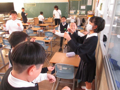 1年生も一緒に楽しむ縦割り班遊びとなりました。6年生を中心にみんなで協力して、工夫することができました。