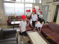着物を着た子供たちは、校長室を訪ねてくれました。講師の先生と一緒に記念撮影をしました。