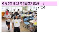 今週、5年生の図画工作科「進め!糸のこ探検隊」では、子供たちが順番に糸のこを使って、板を加工していました。